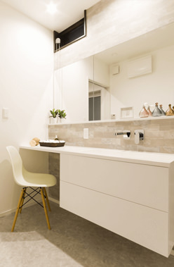イタリアで職人の手磨きによって1台1台仕上げられるシンクやボウルを組み込んだ納得オリジナルの洗面化粧台です。