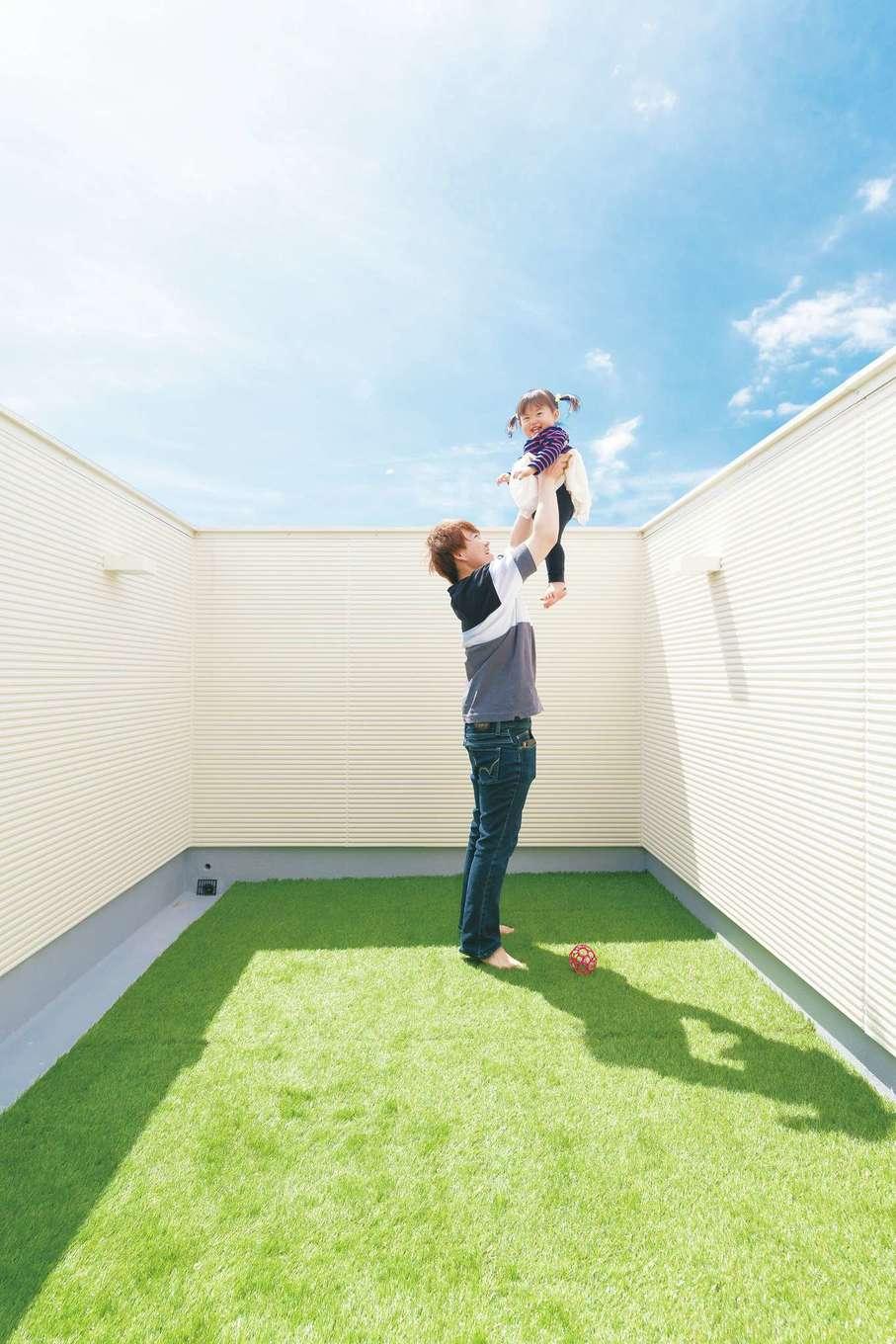 長女が生まれたのを機に、実家に隣接する平屋を2階建てにリノベーションしたAさん。吹抜けを採用した室内は、外観からは想像もつかないほどの開放感があり、快適そのもの。リビングに天井まで届くレンガ調のタイルを貼ったことでブルックリンな雰囲気を演出。高い塀で囲まれたバルコニーは、おうちキャンプも楽しめるプライベートガーデンだ。「リフォーム=妥協することと思っていたのですが、期待した以上の仕上がりに大満足です」と奥さま。「納得デザイン」は新築だけでなく、リフォームでも家族を幸せにする力を持っている。