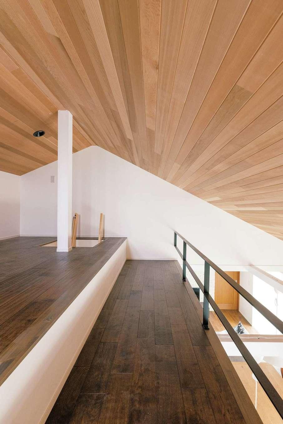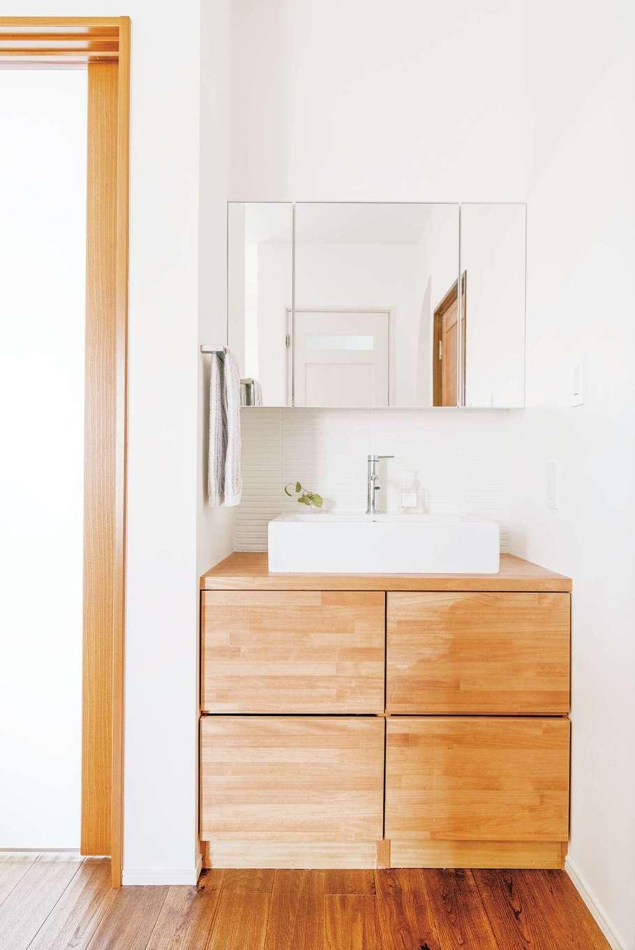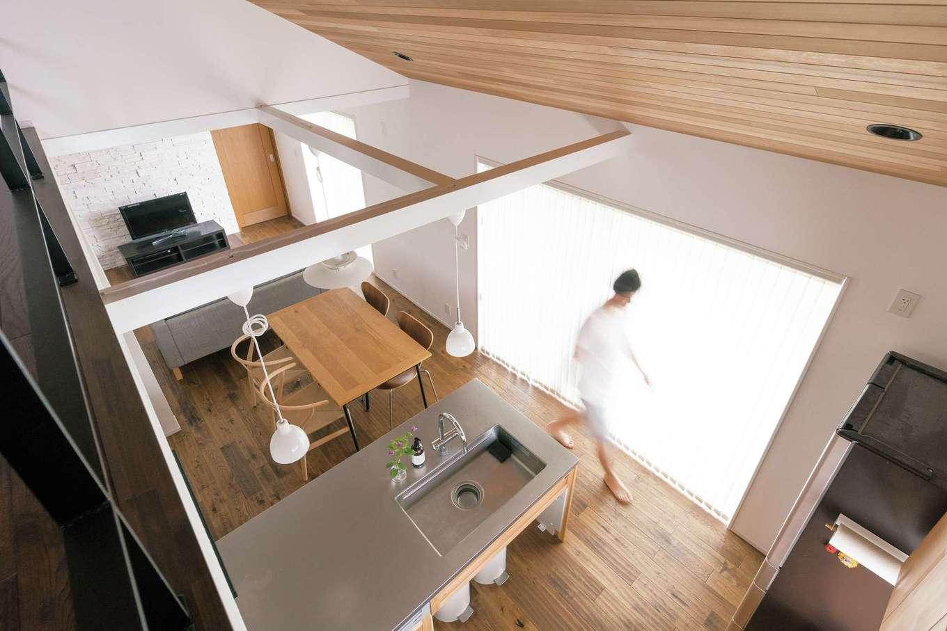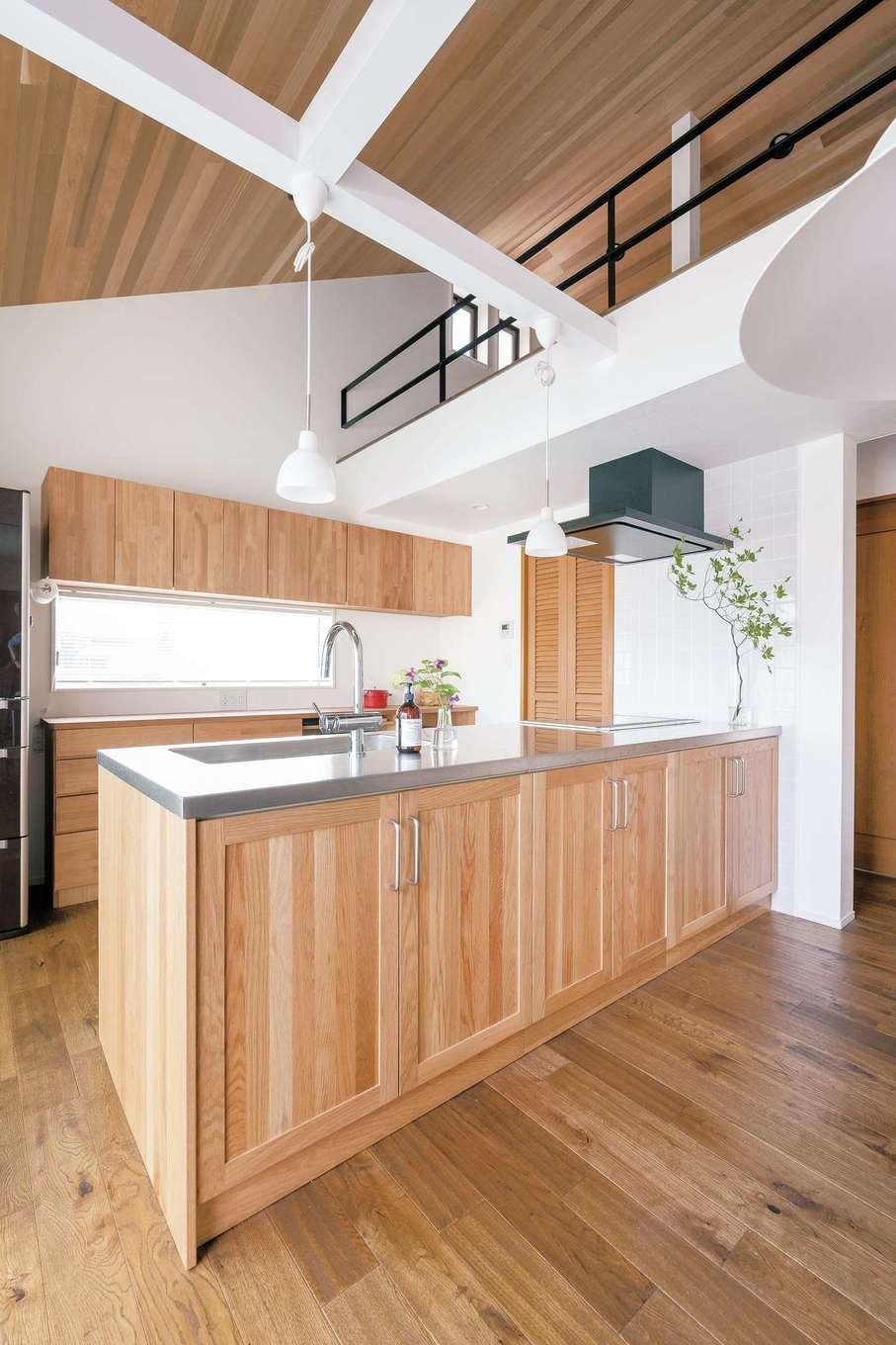ご両親との同居を機に、築23年の実家の2階を全面改修したKさん。さっそく部屋に案内してもらうと、和風旅館のような外観からは想像もつかない、シンプルでモダンな北欧スタイルの空間に誰もが驚く。間仕切りをなくし、合板の床を無垢に、クロスの壁を漆喰に、断熱材をセルロースファイバーに変え、デザインと性能のバランスがとれたナチュラルな空間に生まれ変わった。また、子どもから目が離せない奥さまのために、しなやかな家事動線や適材適所の収納を設け、家事ラク・育児ラクな快適生活を実現。「ひとつ屋根の下ですぐに助け合えるし、かといってお互いに干渉し過ぎない。1階との程よい距離感が心地よくて」と奥さま。このリノベーションは『納得』デザインの家に憧れていた奥さまに贈る、ご主人からの最高のプレゼントとなった。