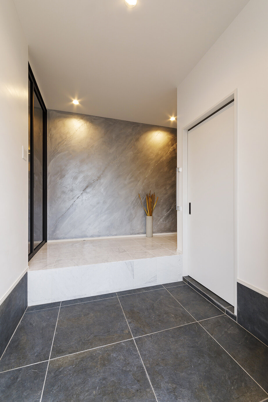 「全体的に黒を主体とした空間に。RC造の構造躯体を活用して立体的な陰影を創り、ラグジュアリーな雰囲気が出るようにご提案させていただきました。」